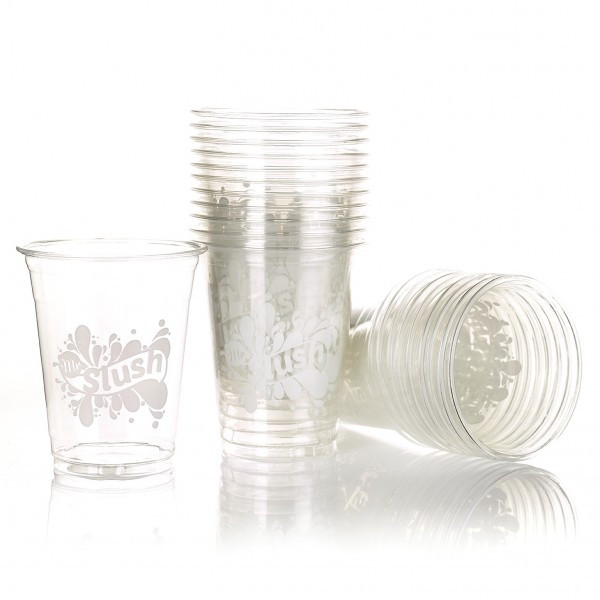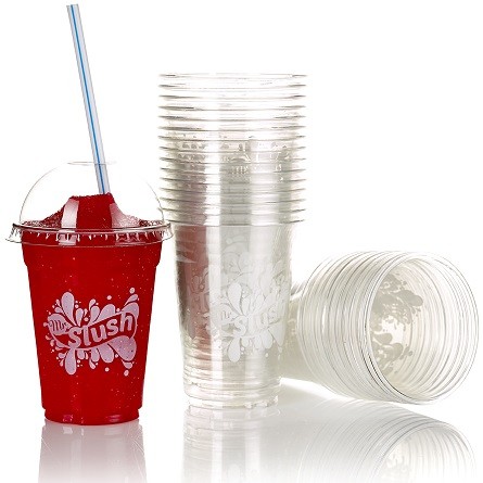 12oz clear plastic branded Mr Slush cups which are environmentally friendly and suitable for recycling. Ideal for medium sized slush drinks, these are thick grade premium disposable plastic cups which can be used for any cold / iced drink.